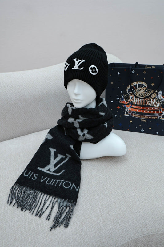 Louis Vuitton Monogram Wool Cashmere Scarf & Beanie Set – Noir Edition