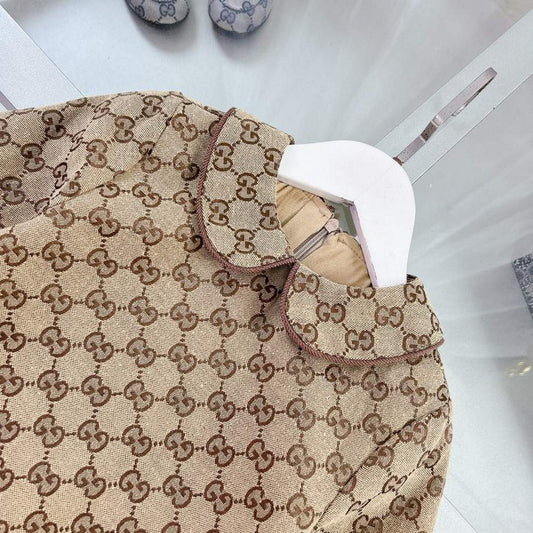 Gucci Kids Beige GG Monogram Dress with Peter Pan Collar