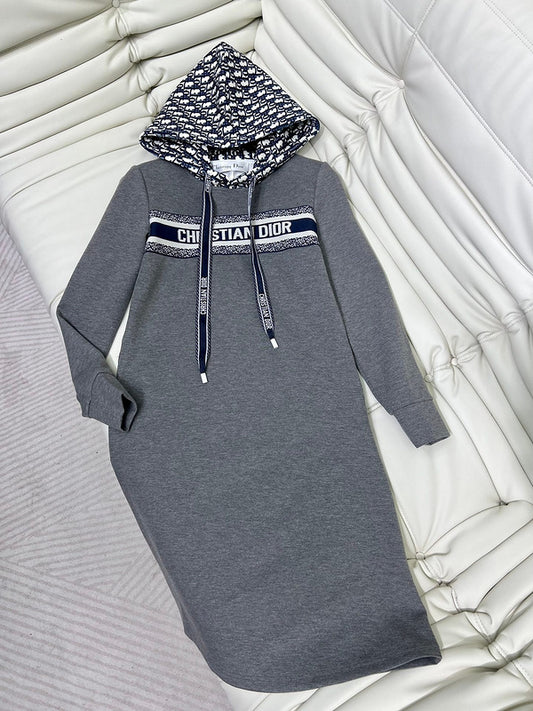 Christian Dior Gray Logo Hoodie Dress